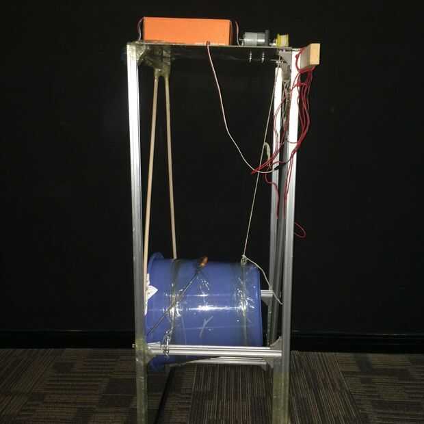 Se trata de un alimentador de gato automático basado en el taladro.  Varias libras de comida para gatos se almacenan en el depósito por encima de la barrena, y el alimentador está programado para dispensar automáticamente 1/4 de taza de alimento en l
