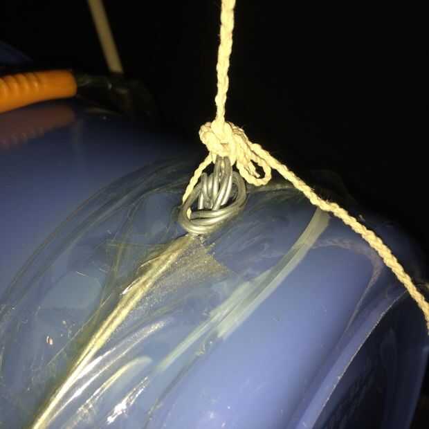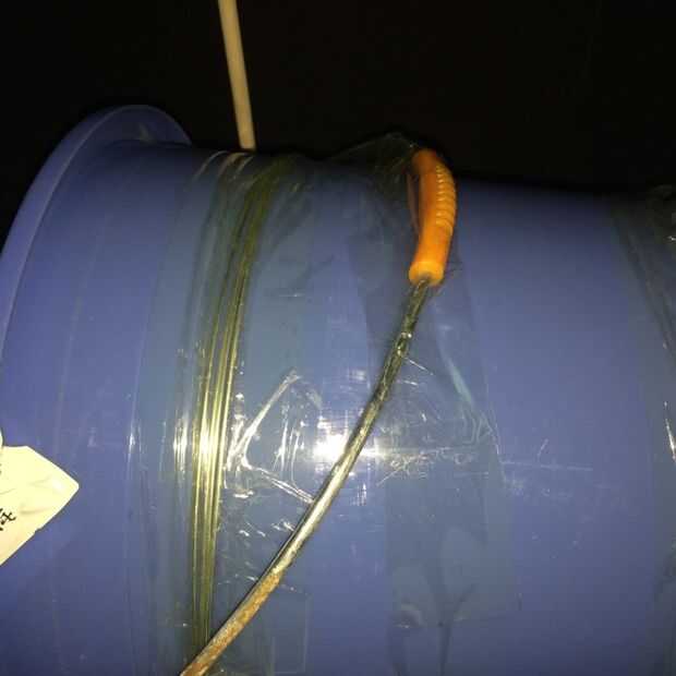 Necesitamos dos piezas de cables, cada parte con varios rollos de cables del viento. La primera parte se utiliza para contener el cubo. Es en la altura de la canastilla de 4/5 (o 3/4).