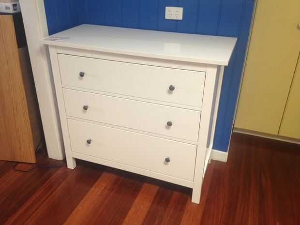 Desanimados fuimos a hormiga IKEA aunque sobre uno de ellos para obtener la pieza que queremos cortar. Lo behold nos topamos con un cofre de dormitorio de tres cajones que parecía que tenía las costillas, pero a $200 es todavía en el lado costoso - especialmente cuando íbamos a hackearlo (ha bajado de precio desde entonces y ahora es de $140).