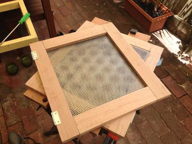 Prueba de ajuste era perfecto. Así que todo había que hacer era arena, pintar, instalar la malla, colgar las puertas y conectar el hardware.