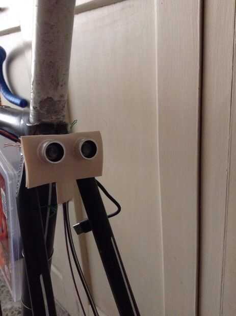 Poner el sensor de ultrasonidos en la parte trasera de la bicicleta, asegúrese de que el sensor está orientado horizontalmente, esto es por lo que el sensor es capaz de obtener la información correcta.