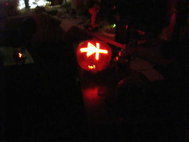 Este ible le mostrará cómo hacer la calabaza talla un poco más interactivo. Mediante la adición de un sensor de distancia de IR junto con un par de LED y un zumbador (todos los cuales son opcionales) puede convertir tu talla en algo cierto refrigerador.