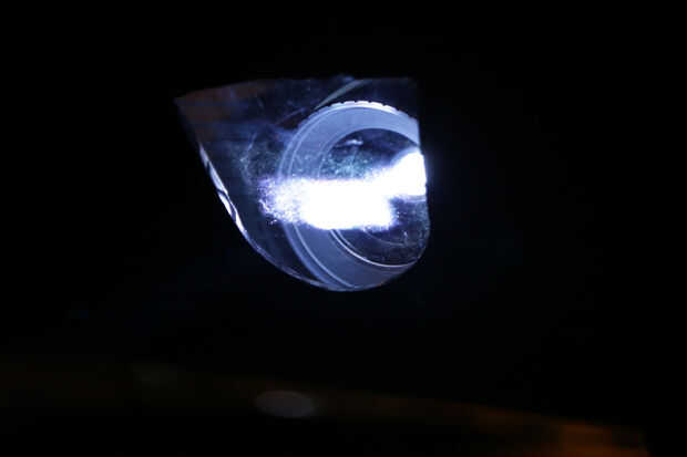 Incluso con las linternas en el rayo de proyección tierras justo en frente de la campana y entre los faros, así que no hay ninguna interferencia a la lectura de las direcciones de proyección.