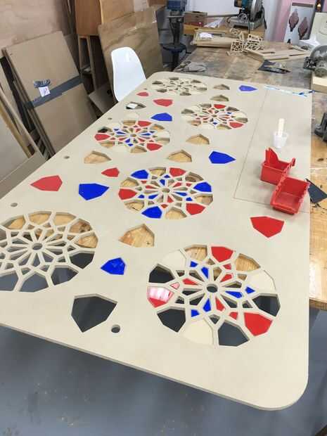 Entonces, utilizamos el mismo diseño para hacer algunos cortes de acrílico para llenar los bolsillos que hicimos anteriormente.