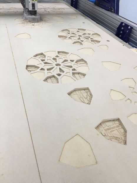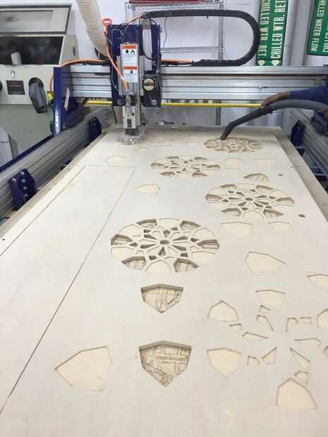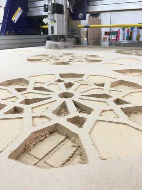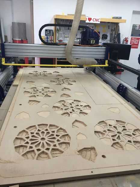 Como se puede ver en este paso, hemos usado nuestra máquina CNC para cortar el diseño en hoja de madera de MDF de 1,2 X 2,4 m.
