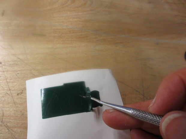 El siguiente paso es 'escarda'. Al igual que en el jardín quite lo que no quieres. No tomo una foto de esto, porque era intención de la boda que tenía que hacer - seleccionado y elegir que parte de los datos de la rana que quería mantener, y que cortes del diseño debo ignorar. Es cierto que no fue fácil mantener los centros de las verrugas y los ciervos las cornamentas. Las mejores herramientas de que la tienda de tecnología ofrece para esto son herramientas dentales a escoger sólo lo que usted quiere. Fue un proceso lento.