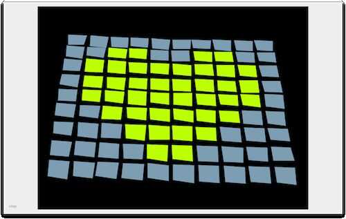 Escribí una sencilla herramienta que proyecta rectángulos en los píxeles de papel. El software permite que las esquinas de cada rectángulo esté alineado con las esquinas de los pedazos de papeles (esto se hace a mano y es bastante tedioso: para cada píxel cada una de las cuatro esquinas debe estar alineados). El video en la página de introducción muestra este proceso. Una vez conocida la deformación para cada plaza, los personajes pueden ser deformidos del mismo modo, los personajes de la mirada de proyección como los de la imagen original. Las imágenes de arriba muestran la deformada imagen proyectada. Cuando se proyecta, las plazas vuelven a ser rectangulares, y los personajes se ven normales.