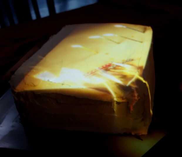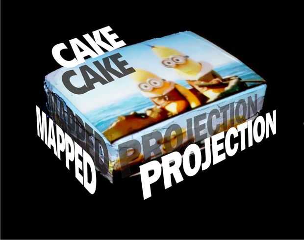 "Proyección Mapping" puede definirse como el uso de un proyector de vídeo para hacer formas inanimadas cobran vida; a menudo deformar el vídeo para que coincida con los ángulos del objeto o edificios para engañar al espectador haciéndole creer que el objeto en realidad está emitiendo la luz, o realmente es deformar ante tus ojos. a veces de formas alucinantes. Hay toneladas de ejemplos que puede encontrar en YouTube. No soy el primer proyecto de vídeo en una torta, hay muchos ejemplos de profesionales en la web.