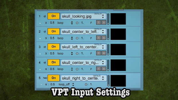 - En VPT, de la mano derecha lista de filas, encender fila 1 (en un mac, sería fila 5 fila 6) y selecciona la imagen skull_looking.jpg de la lista desplegable.