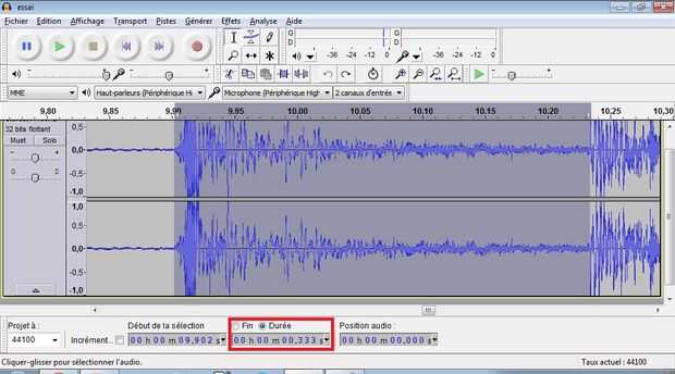 Una vez hecho el zoom, usted puede ajustar la zona seleccionada desde el principio de la puesta en marcha al inicio del impacto. Haga clic en duración en "principio de la selección" tiene un valor en segundos, correspondiente a la hora de vuelo del proyectil.