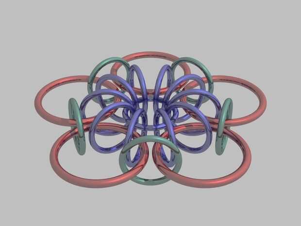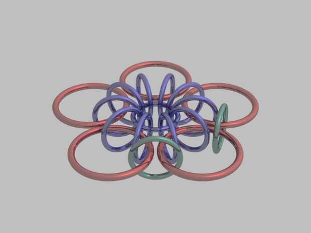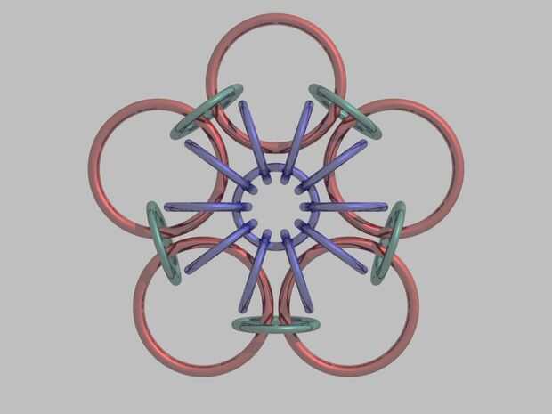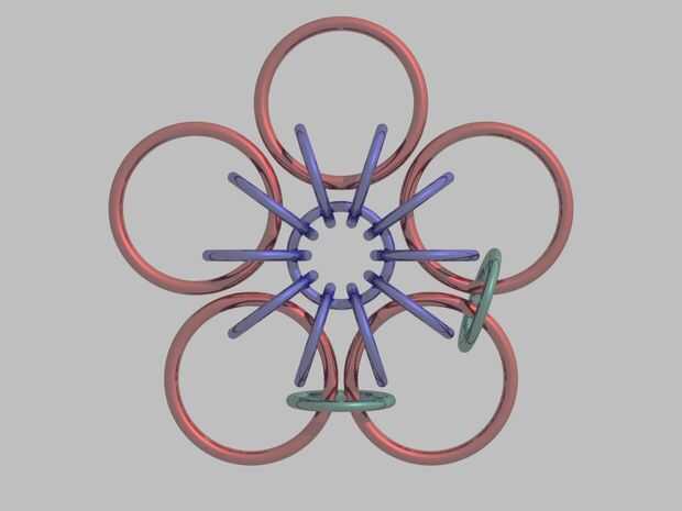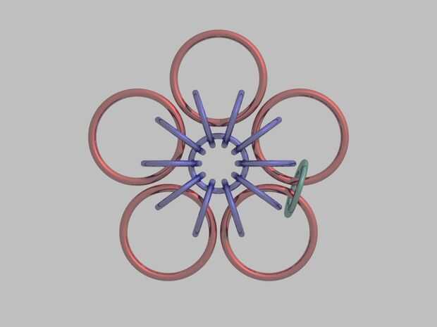 Repita este proceso cuatro veces más. La clave de este paso es cerrar un anillo verde a través de un nuevo anillo rojo y uno de los anillos rojos anteriores.