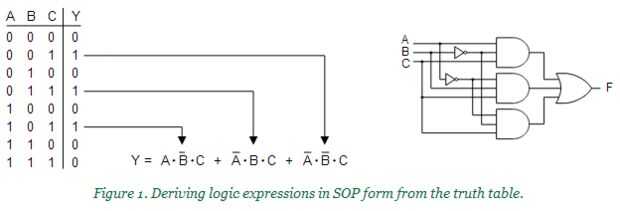 1. un circuito para una tabla de verdad con columnas de entrada de N puede utilizar y puertas con entradas de N, y cada fila de la tabla de verdad con un "1" en la columna de salida requiere una entrada de N y puerta.