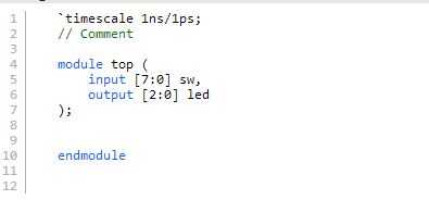 Crear el archivo de módulo superior con tres LED como salida y ocho pulsadores como entrada.