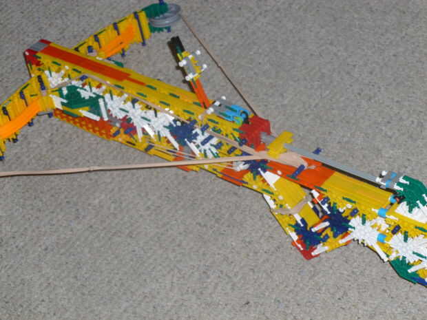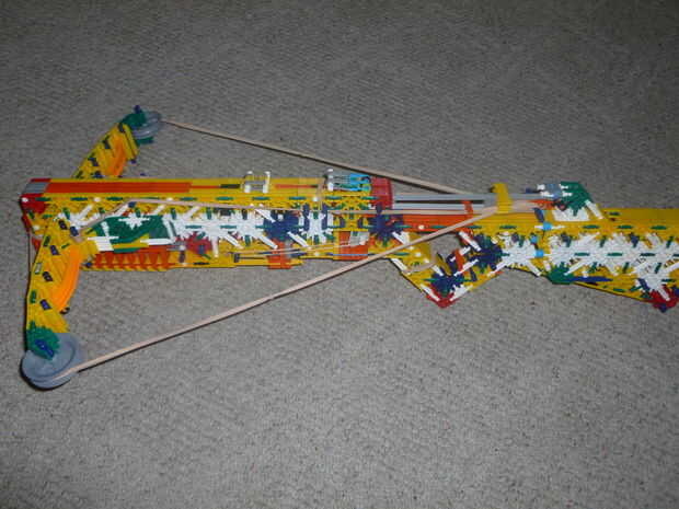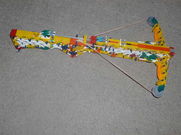 esta es la versión mejorada del proyecto A. V2 tiene una manija mejor en comparación a la original (no era la buena) un mejor perno guía, un mejor disparo y brazos mejor. Nunca averiguar cuánta energía podría llevar a cabo porque estaba usando proyecto s gomas pero tiene cerca de cinco pies más que la original = D