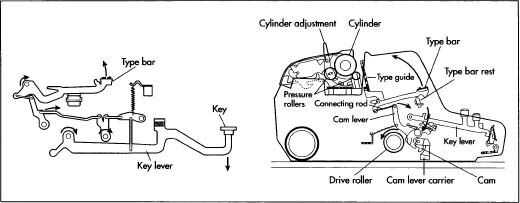 - typebar: también conocido como "tipo martillo". Una palanca con un personaje en el extremo que se balancea para golpear la cinta.