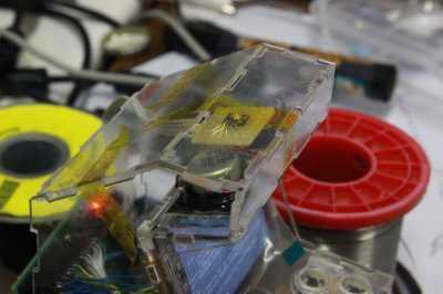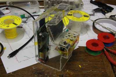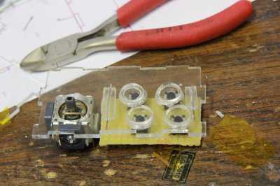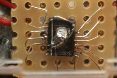 Si tuviera que hacer un arcade funcional mueble, tendría que también lo hacen algunas de las cosas aburridas: un gabinete de la arcada no consiste de un procesador y hardware de vídeo, pero también tiene que hacer el sonido y tiene una forma para el usuario para su control. ¿Primero los botones y la palanca de mando: un juego de video es un poco aburrido sin una manera de controlarlo, derecho? Para el joystick, tuve un agradable Alpes mini-joystick analógico, de la clase que también se ve en varios gamepads moderno. Me podría pegar solo en el caso y hacer con ella. Los botones es necesario trabajar un poco más: tenían que sobresalen de la carcasa un poco sin caer hacia fuera cuando se mantiene el caso al revés. Me valen que pegar un recorte circular más pequeño encima de uno más grande y después usando un rotary tool al archivo un efecto cónico en la parte inferior: luego soldamos unos microinterruptores a un pedazo de prototipos PCB y utiliza unos cables y algunos pedazos de desecho de vidrio acrílico para mantener ese lugar en. Para la interfaz de los botones y el joystick analógico a la frambuesa Pi, usé M-Joy, que es un firmware que puede grabar en un ATMega8 para utilizarlo como un joystick USB HID-basado. No tengo un ATMega8, usé una variante que alguien modificado para el ATMega88. (Espejo del local) Todo encajaba perfectamente en el espacio debajo de los botones: para la parte de audio, decidí usar los altavoces internos de un ordenador portátil de Dell roto. Los altavoces son una friolera de 2 watt y lo suficientemente pequeño para caber en la parte superior de la cabina arcade. Tengo dos de ellos por lo que podía hacer sonido estéreo... no es que yo creo que hay mucho estéreo quedarían con los altavoces que se estar justo al lado del otro, sino porque se ve bien. También necesitaba un amplificador para los altavoces de dos. El mainboard del ordenador portátil original tenía un amplificador de 2W TPA6017 TI, ubicado en un pequeño paquete TSSOP. Esta parte necesita sólo unas tapas como componentes externos, y fácilmente podía desoldar usando una pistola de aire caliente. La desventaja es que es muy pequeña, así que decidí muertos-bug en un poco de placa de prototipos, con los condensadores SMD necesarios en la parte inferior de la PCB. Básicamente seguí el circuito de referencia como se muestra en la hoja de datos para construir el amplificador, no moleste con esquemas mal dibujado para él. Realmente no podía hacer, aunque en una cosa: el cojín del metal en el centro de la parte inferior (top ahora) debe conectarse a un plano de tierra en la PCB, para trabajar como un disipador de calor. Mi aplicación de deadbug realmente no tiene, por lo que debo tener cuidado de no conducir el amplificador demasiado. Finalmente, pega los altavoces en el caso y poner el amplificador encima de ellos. Mi gabinete de la arcada tenía pocos vatios para anunciar su presencia!