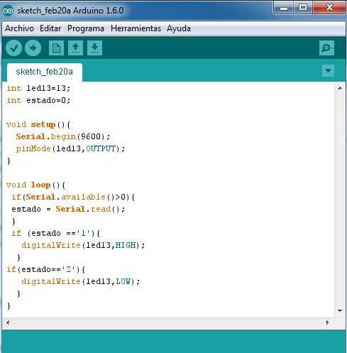 donde se establece la comunicación y se asigna las variables para el encendido y apagado de la lampara