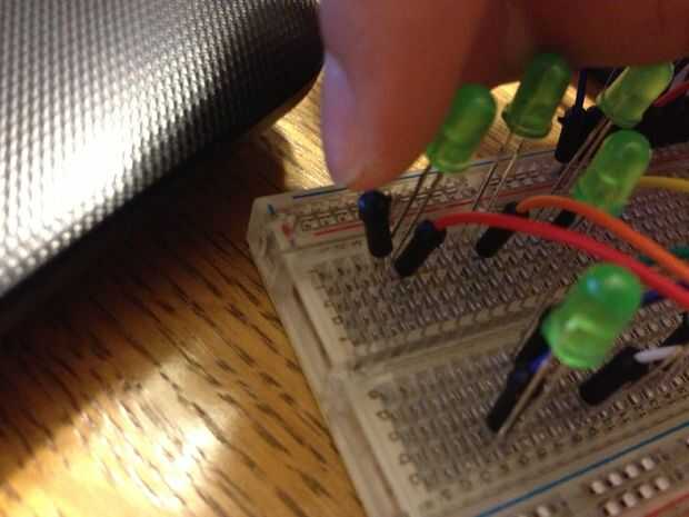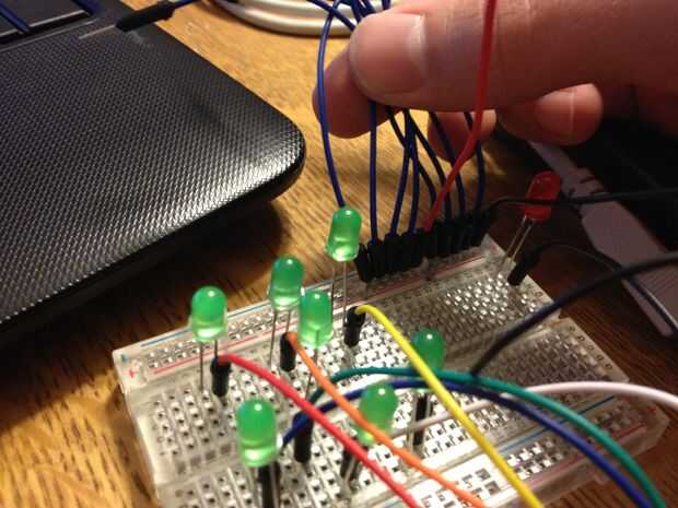 Una vez los dos cables en el carril superior allí, tendrá que añadir 8 pequeños puentes en los carriles donde han aterrizado los cables grandes.