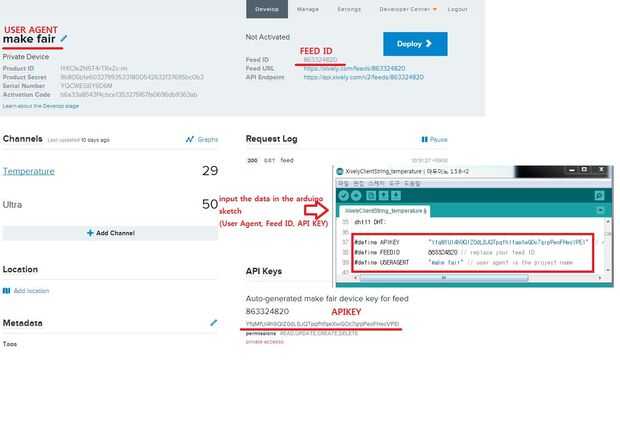 3. Introduzca el "User Agent", "Alimentación ID" y "APIKEY" en el Sketch de Arduino