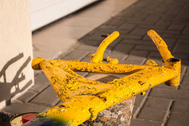 Mientras estaba muy tentado a poner el marco en un lugar para conseguirlo con chorro de arena, al final me decidí a hacer el trabajo de remoción de pintura yo mismo.
