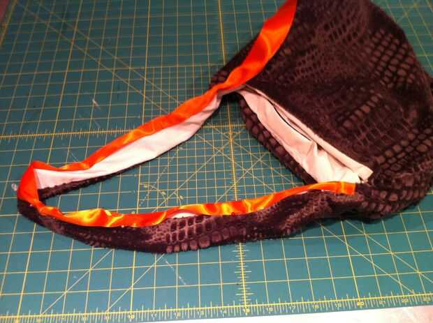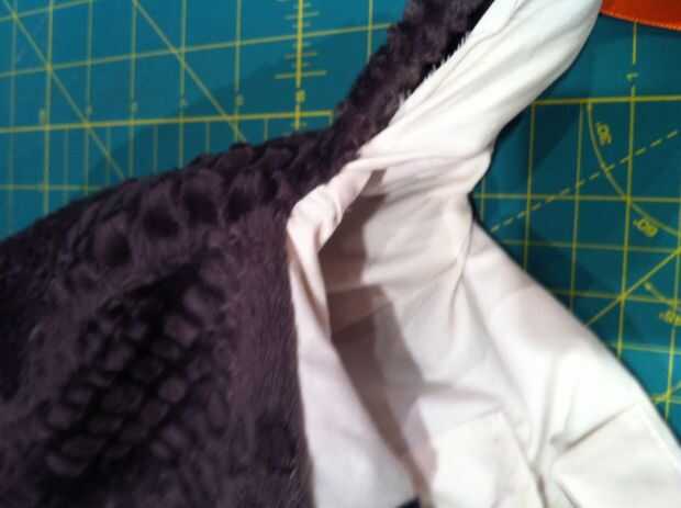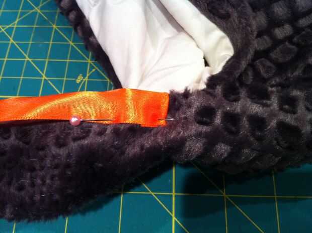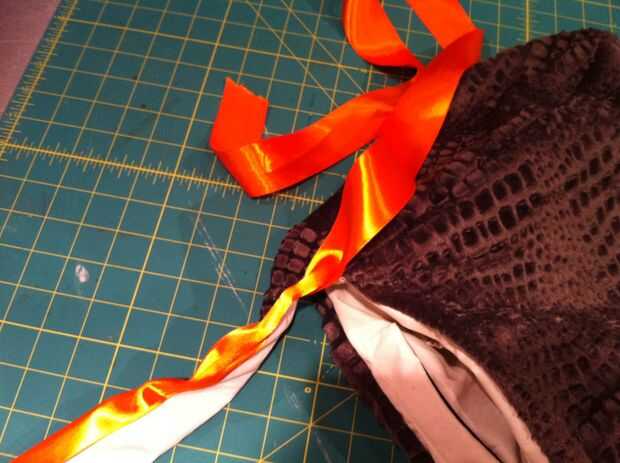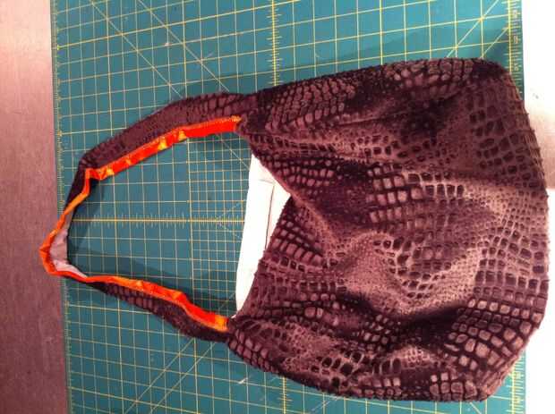 Plegar el extremo de la cinta, cubierta de la correa y el pin desde el borde del bolso. PIN todo el camino alrededor y al llegar al otro extremo, corte la cinta a la medida, dejando lo suficiente para convertir su interior en ello así. Puntada. Relleno con hilo o libros o cuentas o componentes electrónicos o borlas o cualquier proyecto te quieren mantener con usted para trabajar.