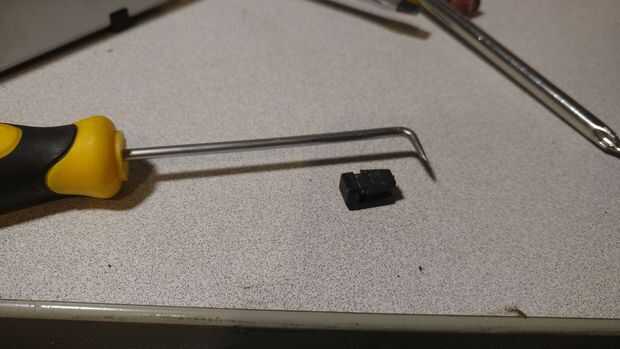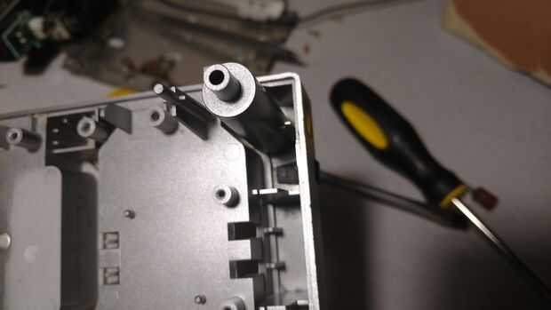 Puede que desee quitar las almohadillas delanteras antes de pintura y lijado de la parte inferior de la caja. Los escoge una almohadillas de goma que son fáciles de quitar con un destornillador plano pequeño o un ángulo como el que usé. Levante los dos lados y les tire suavemente de la caja.