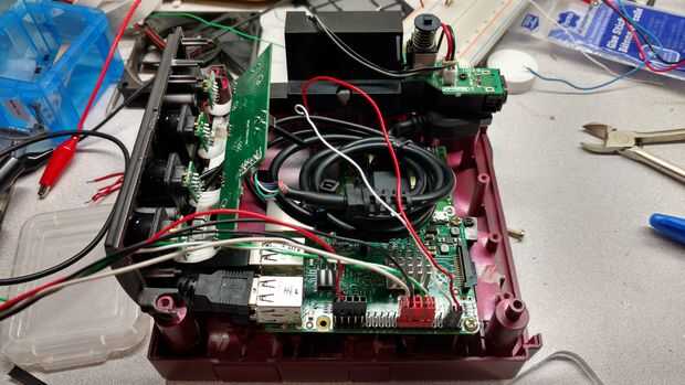 Como quería conseguir un look «población», he instalado dos interruptores adicionales en el Reset y ubicaciones de botón Eject instalación así como un LED donde el original era. Configuré el pastel para responder el botón como "Sudo reboot" y la expulsión como "sudo poweroff" me refería a AndrewH7 instructivo para un fácil entender y aplicar la solución. También he añadido un script para encender el led al inicio así que sé que el sistema es aún y cuando apagar con seguridad (como GPIOs volver a un estado bajo en el apagado del sistema, los giros led apagado)