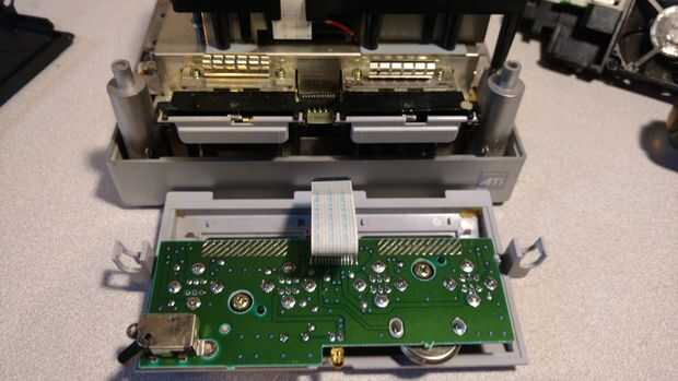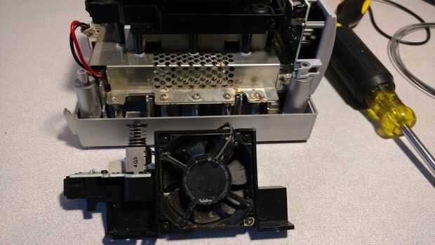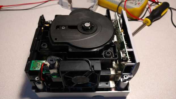 Después de quitar la parte superior de la caja, puede ver fácilmente todo el asunto. La mayoría del espacio es utilizado por la unidad óptica con su sistema de suspensión. de todos modos, coge el destornillador y quitar todo lo que puede ver, hay que varios alrededor de la unidad de apoyan. También puede mantener el conector de alimentación que incluye el ventilador. También Desconecte el bisel frontal con sólo se inserta en la placa principal. Lo guardo para más adelante.