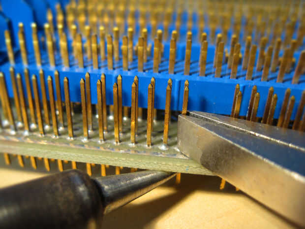 Si hay algunos grupos de soldadura a la izquierda puede suavizarlo que aplicando algún flujoy calentamiento. Después de todo debe ser suave para encajar en el protoboard.