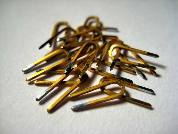 Ahora cada pin cuidadosamente en el centro de la curva. Debe ser fácilmente posible doblar cada pin directamente con las manos alrededor de un objeto redondo (eg. destornillador). También puede utilizar pinzas de punta redonda para un mejor resultado.