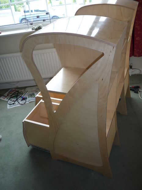 Tuve unas semanas para construir una silla y decidió experimentar con madera contrachapada de flexión. En vez de laminar chapas o usar un producto como curvada, traté de lamina contrachapada de muebles finos para hacer la madera más gruesa. Mis resul