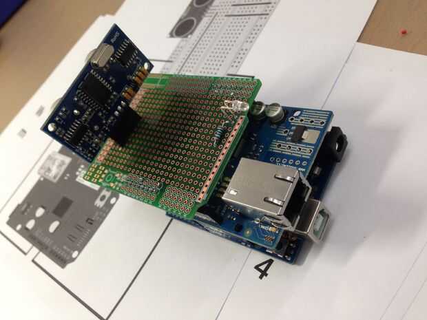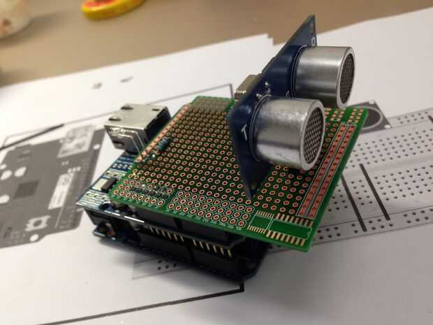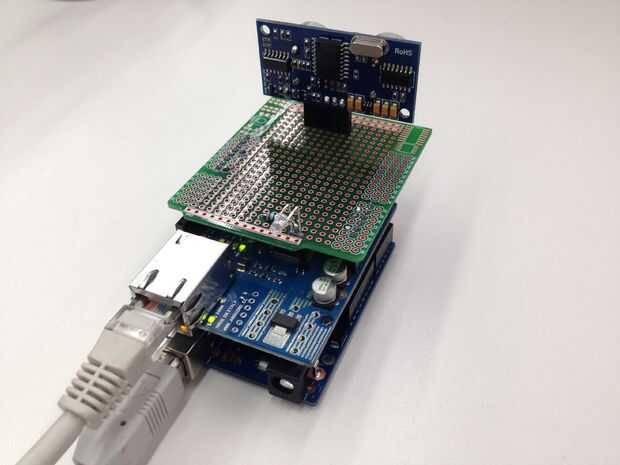 B. la pila "ultrasónico & escudo IRLED" en escudo Arduino ethernet