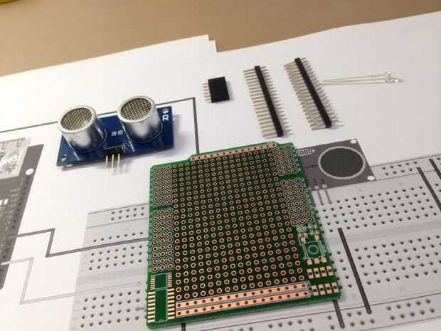 - Preparación de piezas eléctricas para hacer escudo (jefe del sensor ultrasónico, IRLED, pin, 100 ohm, cable color)