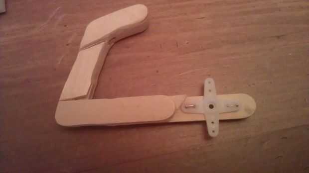 4. crear el "dedo" con palitos. Antes de crear el dedo, se burló de ella dibujo el dedo en un pedazo de papel, cortarlo hacia fuera y después superponer la palanca del servo. Simular la rotación de la palanca del servidor con el dedo para ver cómo el dedo se alcanza alrededor de mover de un tirón el interruptor apagado. Una vez que el tamaño, ángulo y grosor, el recubrimiento del mock de papel con el palito. Usted puede Agregar tantas capas de palitos como sea posible para crear el espesor adecuado para cuando gira el dedo, es capaz de pulsar el interruptor. Crear agujeros en el extremo de servo del dedo donde puede colocar el dedo en la palanca del servo.
