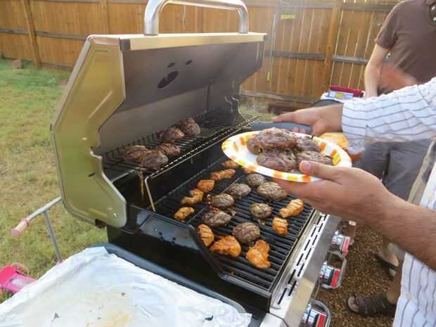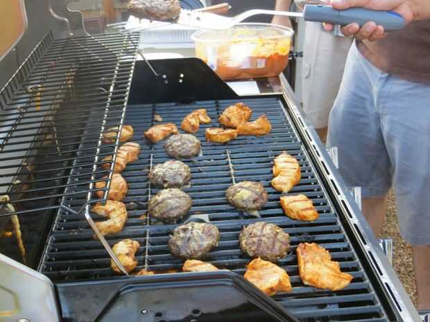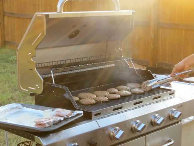 Una parrilla pequeño contador, una parrilla de gas grande y un fumador