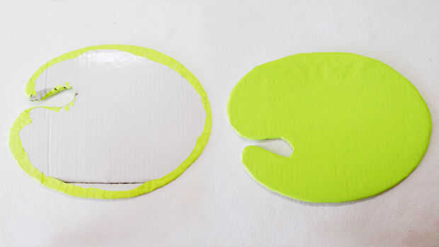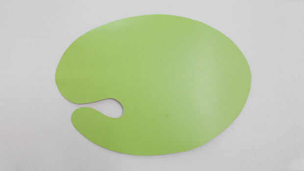 Cortar la paleta de colores de una cartulina gruesa y cubrir con papel verde.