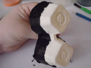 La dos hueveras juntos va a ser la cara y el vientre. Pintar la cara y el vientre del blanco del pingüino.