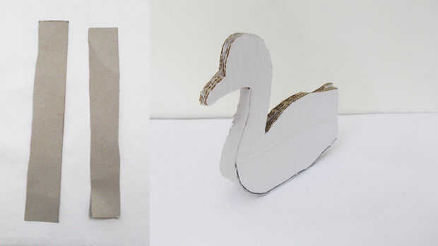Cortar tiras de cartulina delgadas y cubrir la brecha que queda entre los dos cuerpos del pavo real.