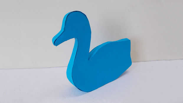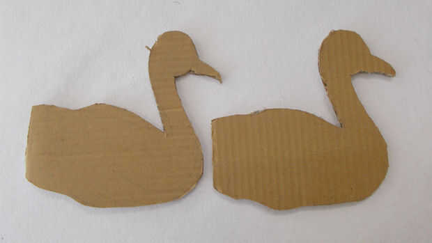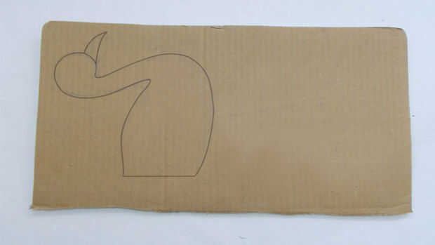Hacer la base del arte dibujando la forma del cuerpo, cuello y el pico del pavo real, en un cartón grueso y hacer corte similar dos salidas como esta.