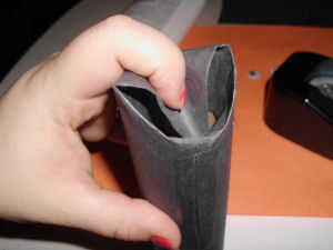 Envolver el rollo de papel higiénico en cartulina negra y asegúrelo con cinta adhesiva o pegamento.