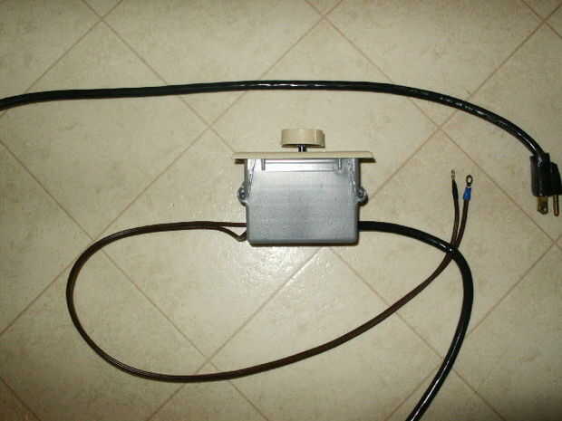 Después de terminar esta reseña, que quería probar un dimmer rotatorio-estilo y ver cómo en comparación con el regulador Modelo usé primero. En lugar de pasar por el galimatías todo de la caja de madera, pinza para la ropa, etc., acabo de recibir una caja eléctrica de plástico (los contratistas buenos utilizan durante la instalación del cableado de la casa). Hogar y Wal-Mart tienen muy buen precio. He pagado menos de 30 centavos por un plástico gris uno. Luego encontré un nuevo estilo rotativo 600 vatios dimmer en Lowe por menos de $5. El regulador de luz, como cualquier otro interruptor eléctrico doméstico, se hace para caber una caja de tamaño estándar, por lo que todos juntos fue muy fácilmente. Con conectores de engarce simple que cableado del atenuador a 250v, 2.2uF (25 centavos para la tapa) del condensador de la película y usa dos cables salvado entrando y saliendo. Costo total, menos de $6.