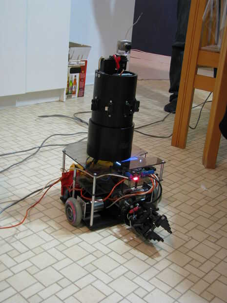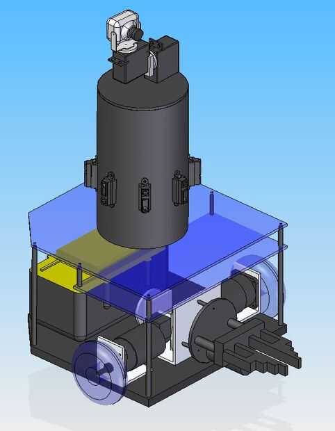 La forma básica no fue modificada. Utilizamos policarbonato para apoyar todas las tarjetas electrónicas, MDF como base y la tubería de ABS como la torre central que soporta nuestros sensores infrarrojos a distancia y la Asamblea de la cámara.