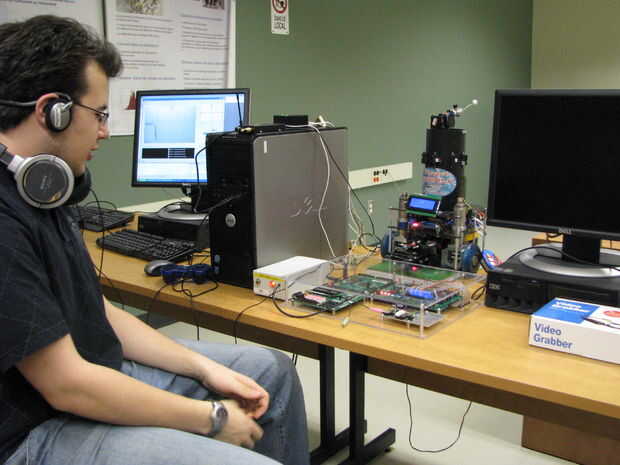 El operador utiliza un mando normal para transmitir los comandos de movimiento/pinza para el robot y un auricular para el control de la cámara.