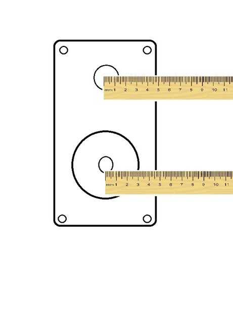 Marqué los altavoces midiendo desde el centro del cono de altavoz hasta el borde exterior de la canal de altavoz. Ofreció las medidas hasta el maletín para dibujar el contorno de la unidad de altavoz real, con la ayuda de una perforadora para cortar madera.