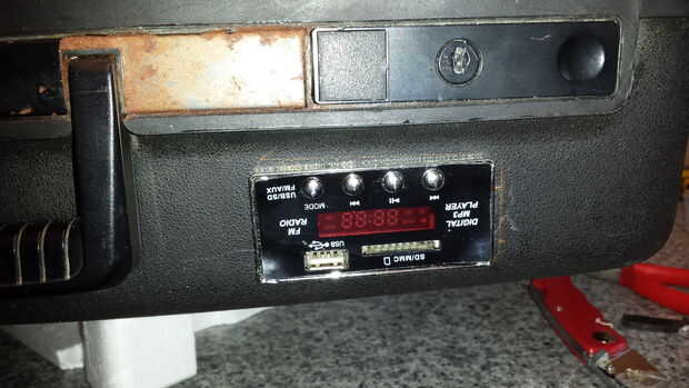 La salida de audio también fue conectada a la entrada Aux del sistema estéreo, pero pongo en un selector para evitar interferir uno con el otro =]. una opción final cruda que hice para facilitar las cosas.