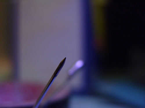 La aguja más pequeña que he encontrado es en la figura 1, la parte ancha es más gruesa que 0,2 mm pero hemos usado sólo el punto.