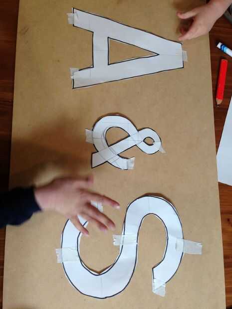 Trazar las Letras con el lápiz del carpintero y luego el rotulador una vez que haya quitado la plantilla de carta. Esta es una parte que pueden hacer los niños.