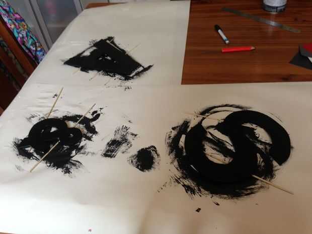establecer el papel del arte, sellen con masking tap y delantal para arriba! pintar las Letras con trazos de pincel suave y usar palillos o pinchos para levantar las cartas el papel. un undercoat y una pizarra pintura es suficiente teniendo en cuenta los niños tienden a perder la paciencia... 3h de secado entre capas es buena. Esto es algo que usted puede conseguir los niños a ayudar con... Les pedimos permiso para retocar, para que no pierdan la confianza.