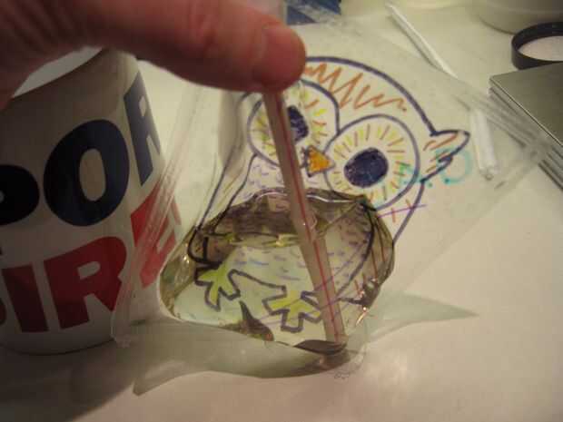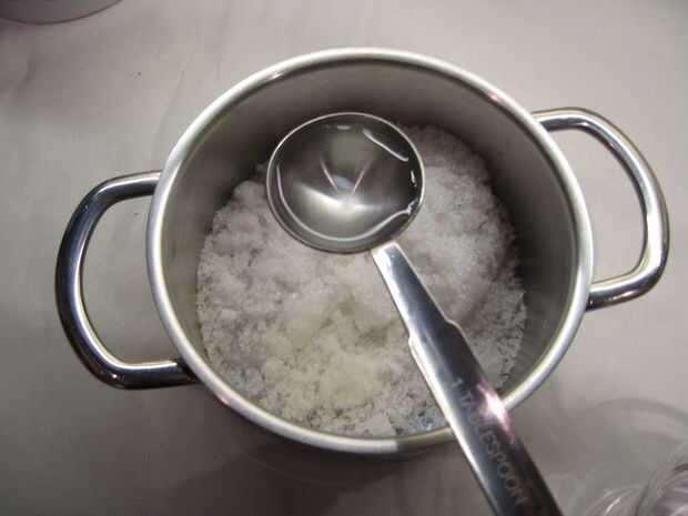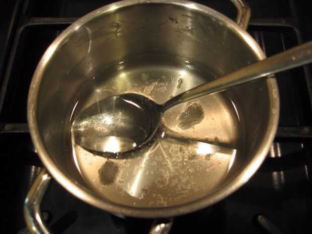 Colocar el acetato en una cacerola pequeña y calentar con dos cucharas de mesa de agua (2 x 15 ml).