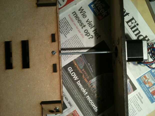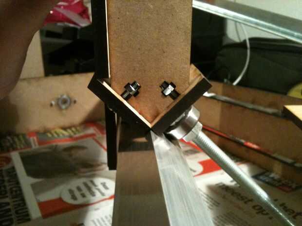 Finalmente recibió el láser cortar piezas MDF hoy! Yeay! Iniciado el montaje de las piezas, voy cortar rieles y tornillo largo muy pronto. Espero recibir el rodamiento en el correo en algún momento esta semana que voy a tener un eje x movimiento este fin de semana!